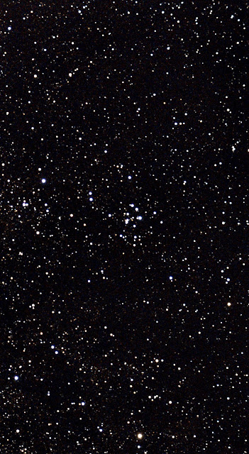 At this point Sagittarius was beginning to dip closer to the horizon, so I quickly tried to image some targets there. First, I took a 5-minute exposure of open star cluster M18 whose unimpressive portrait fills the next image's center.